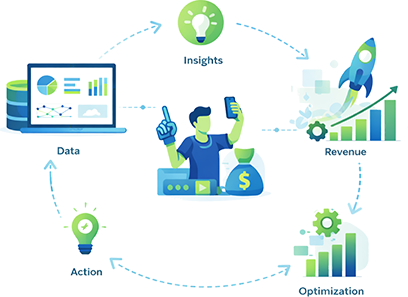 Data → Insights → Action → Engagement → Revenue → Optimization